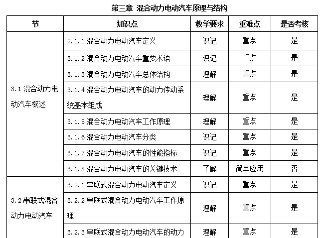通过《电动汽车原理与结构》课程学习,学生应该了解电动汽车的发展历史,电动汽车的分类及整车总体结构的变化,纯电动汽车的结构原理,混合动力汽车的分类,串联式混合动力汽车的结构原理,并联式混合动力汽车的结构原理,混联式混合动力的结构原理,插电式混合动力的结构原理,燃料电池汽车的结构原理,掌握各种电动汽车的定义、基本工作原理、结构特征等,具备进行电动汽车总体结构布置与选型设计的工作能力,以适应汽车行业的电动汽车人才队伍需求。